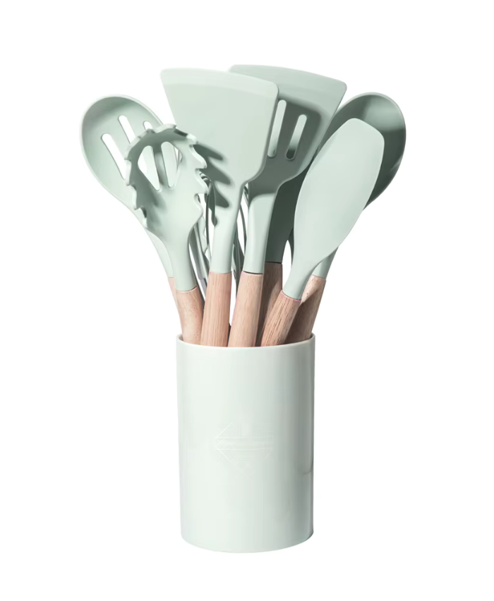 Conjunto 12 Peças, Silicone com Cabo de Madeira
